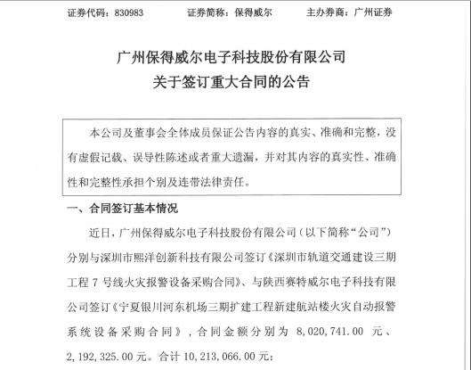 2016年上半年,在公司正確的經營方針指引和全體員工的共同努力下,保得威爾發(fā)展進程加速,市場占有量持續(xù)擴大,品牌形象進一步深入人心。根據公司第2016-012號公告,公司一季度分別簽訂《深圳市軌道交通建設三期工程7號線火災報警設備采購合同》、《寧夏銀川河東機場三期擴建工程新建航站樓火災自動報警系統(tǒng)設備采購合同》等重大合同。