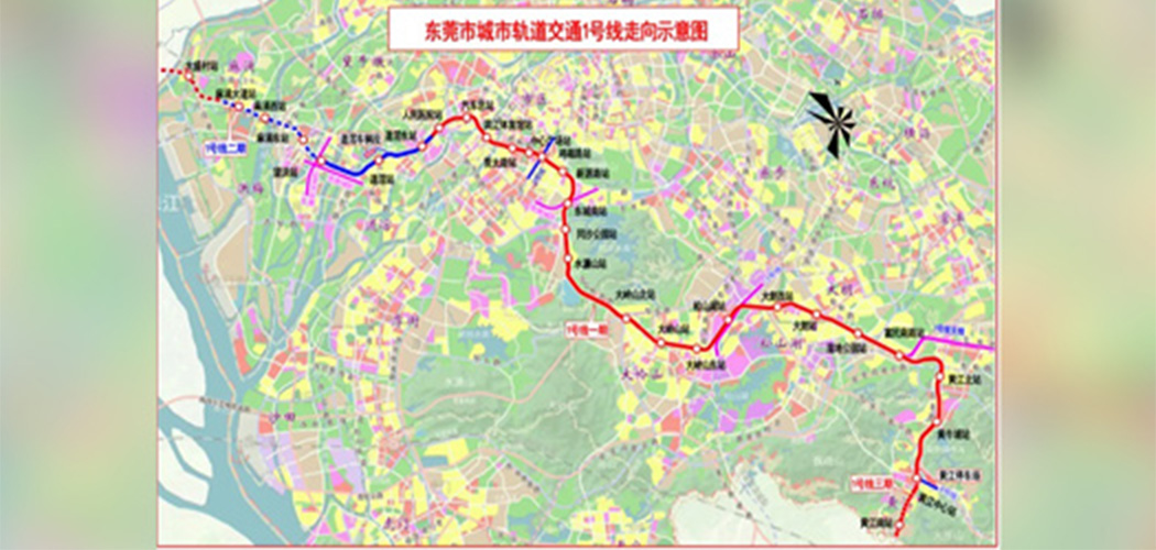 東莞市軌道交通1號(hào)線一期工程(望洪站~黃江中心站段)線路總長(zhǎng)57.46千米,設(shè)車站25座,是東莞城市軌道交通線網(wǎng)市域骨干線路之一。