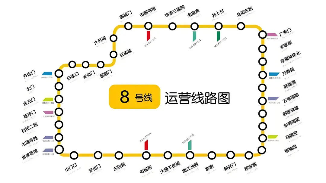 西安地鐵8號(環(huán))線,共設(shè)計有18座換乘站,其中13座換乘站將在開通初期投入使用。這些換乘站分別與已開通運營的多條地鐵線路實現(xiàn)快速換乘,具體如下: