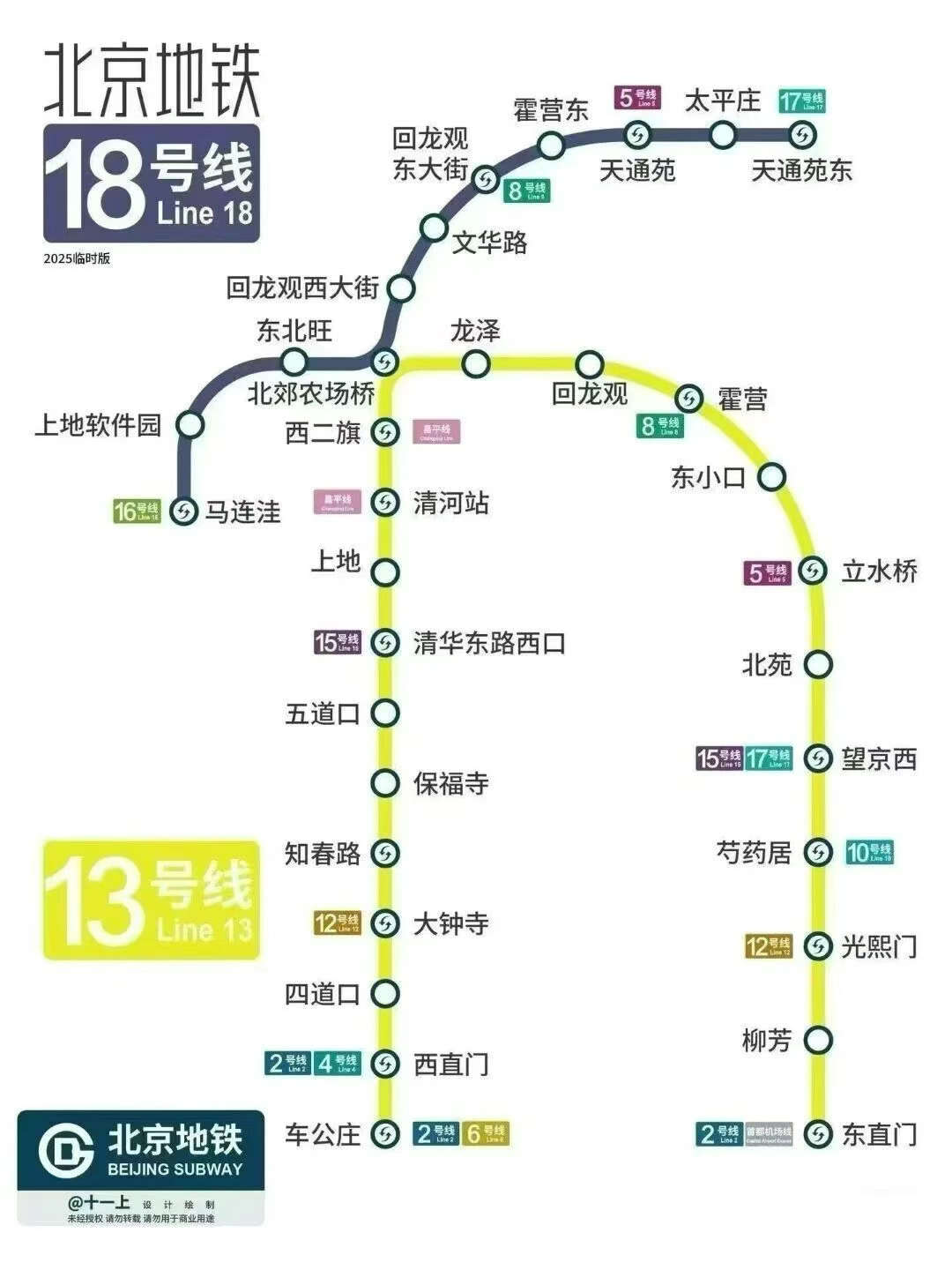北京地鐵18號線(馬連洼-天通苑東),途經(jīng)海淀、昌平兩區(qū),約19.8公里,共設(shè)有11座車站,其中4座為換乘站,可連接5號線、8號線、16號線和17號線,它有效分流了北部縱貫客流的壓力,顯著優(yōu)化了既有線路的運(yùn)營負(fù)荷,使北京地鐵網(wǎng)絡(luò)運(yùn)行更為均衡、堅(jiān)韌。